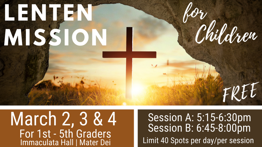 This page includes information about Lent & Easter events and activities including Ash Wednesday, Lenten Fish Fry, Parish Lenten Mission, Children's Lenten Mission, Stations of the Cross, Blessing of Easter Food Baskets & Egg Hunt, Holy Week (including Holy Thursday, Good Friday, and Holy Saturday) and Easter Sunday Masses.